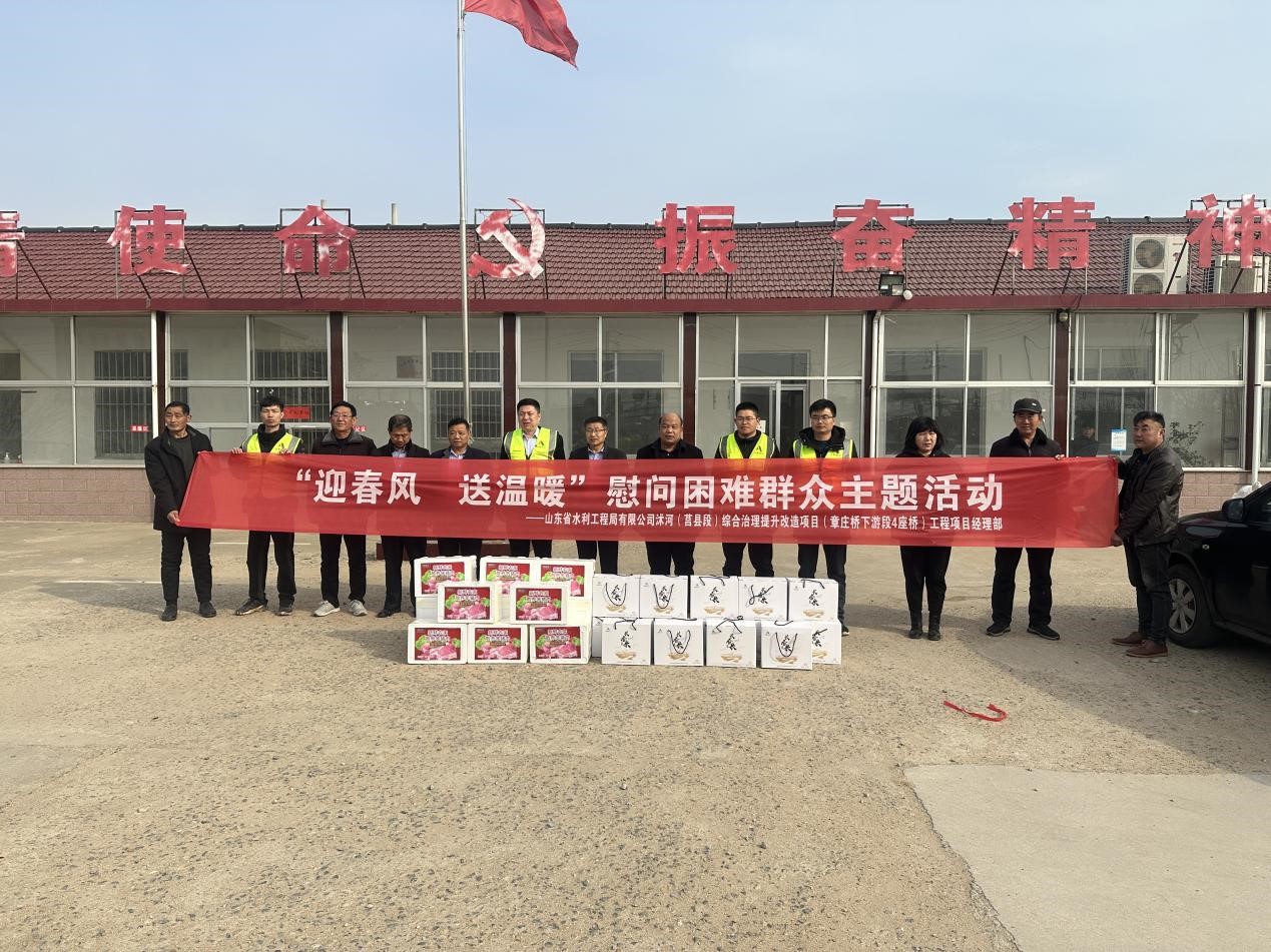 2月22日,第一工程公司黨支部書記蘇東虎一行等人在莒縣劉官莊鎮(zhèn)黨委委員、副鎮(zhèn)長蔣為光陪同下,到公司莒縣項目部駐地柳河村、前云村開展“迎春風、送溫暖”走訪慰問活動。